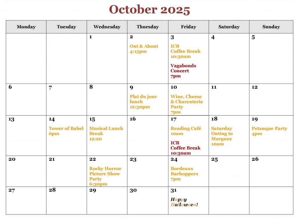 Recent events have included an architectural tour, a whiskey tasting, a day at the races, the Ruban Rose Challenge, a Sunday drag queen brunch, a private guided visit to the Domaine de Certes nature reserve, an oyster-tasting evening, a book launch … and more than a few ICB parties throughout the year, including our annual Holiday Party, a Spring dinner, summer picnics and a summer kayak outing.